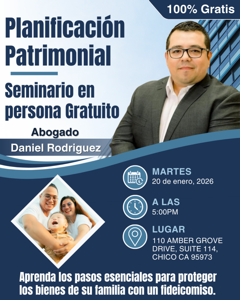 Asista al Seminario GRATUITO de Planificación Patrimonial con el Abogado Daniel Rodríguez y aprenda cómo: